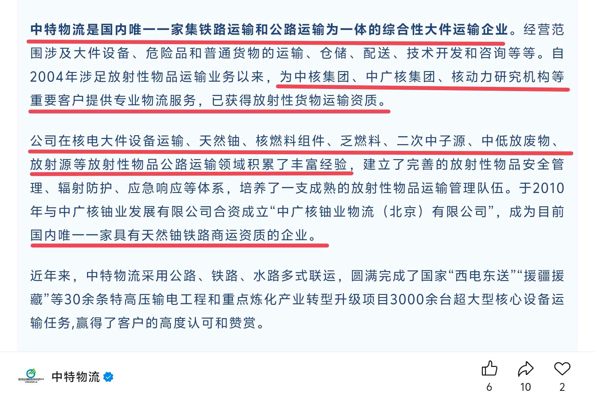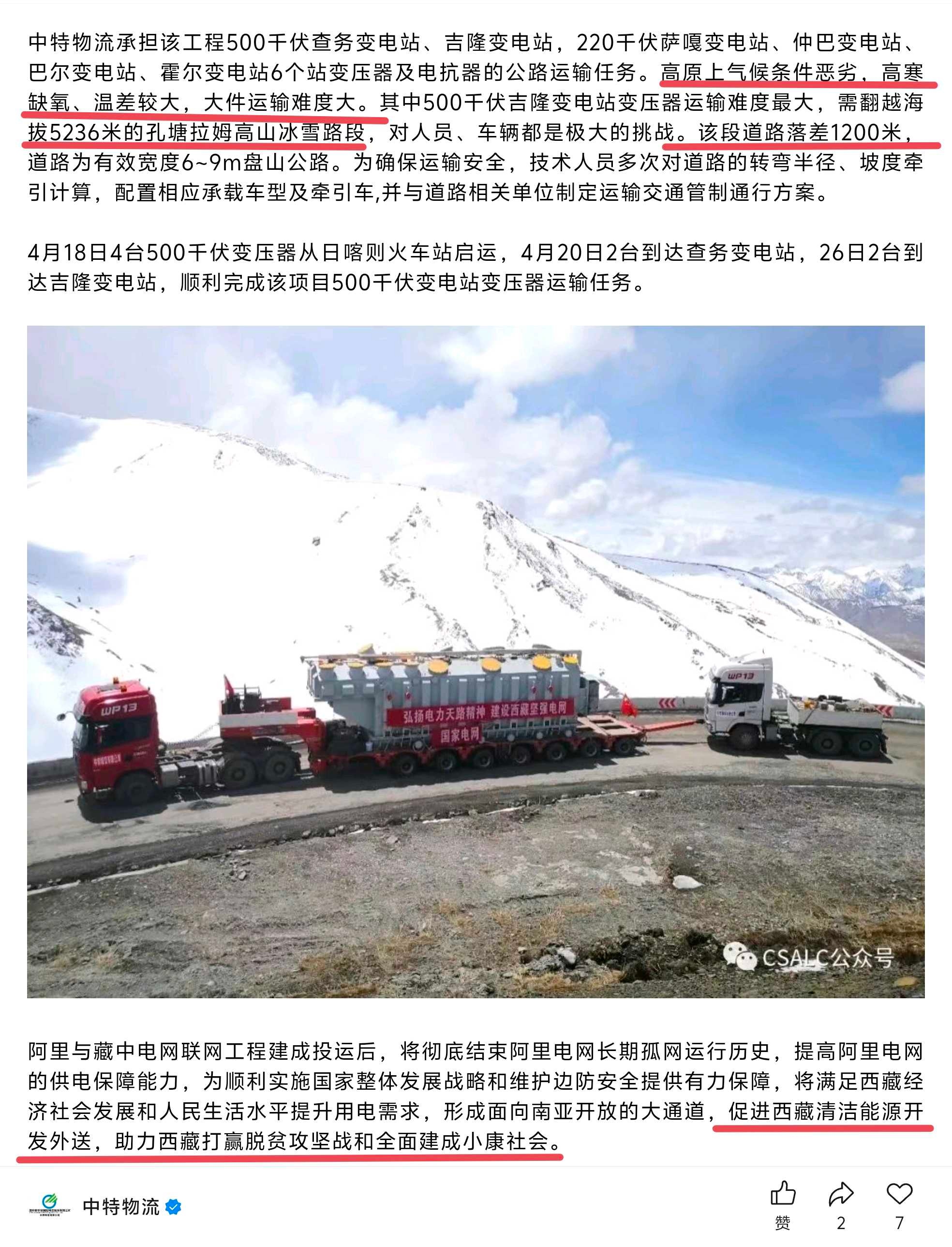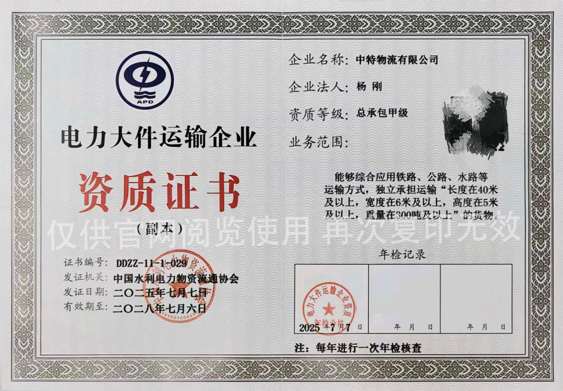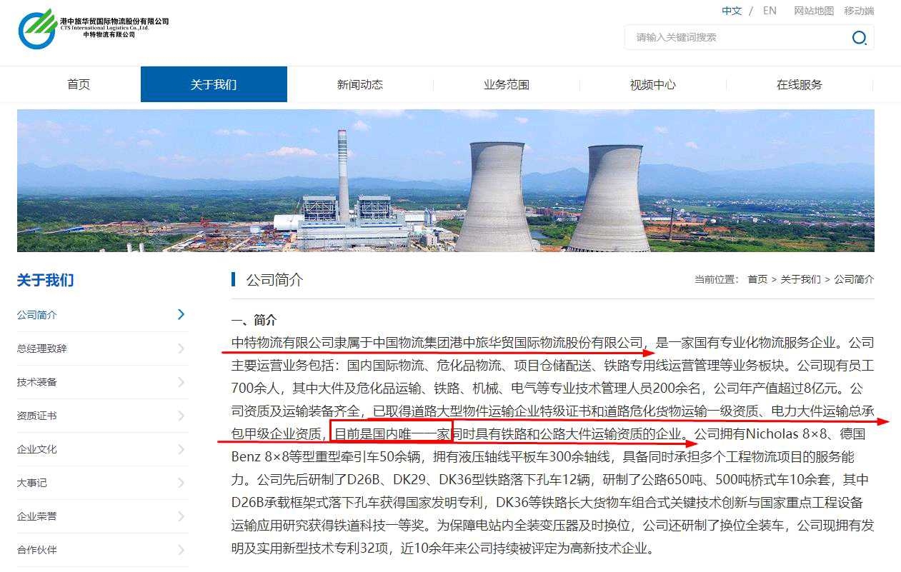 公司已经完成西藏5000多米海拔大件运送任务,公铁联运大件全国只有中特一家有双资质,出火车站后还有一百多公里的高海拔盘山路,作为央企中国物流集团子公司有能力保障雅下水电站大件运输任务