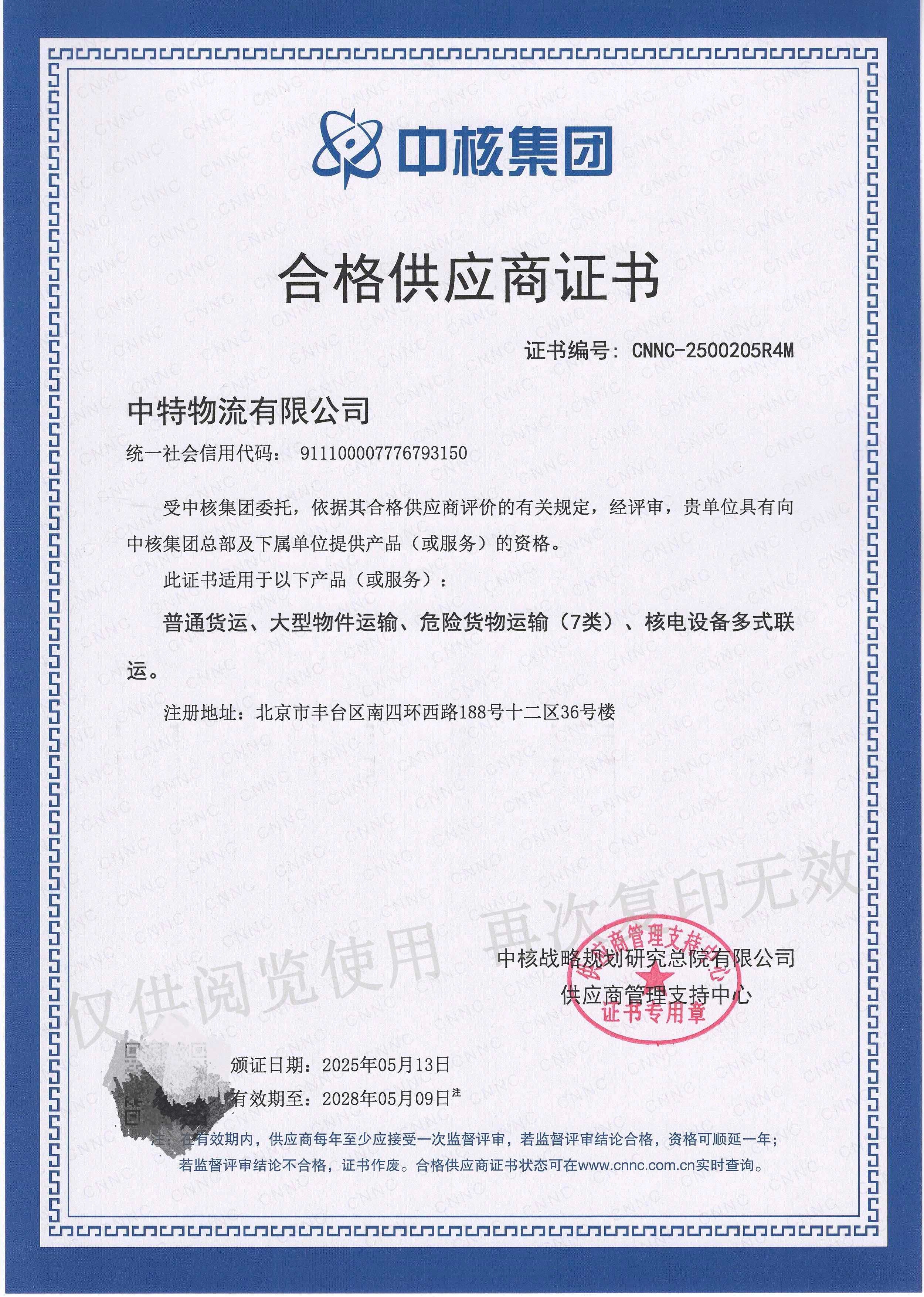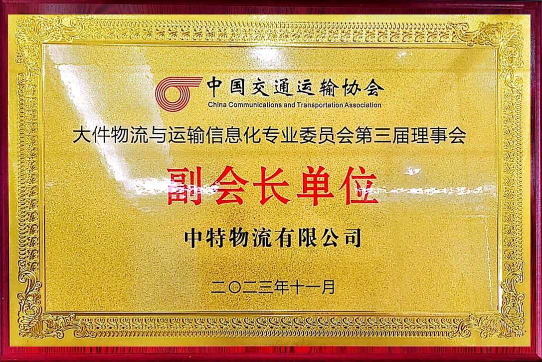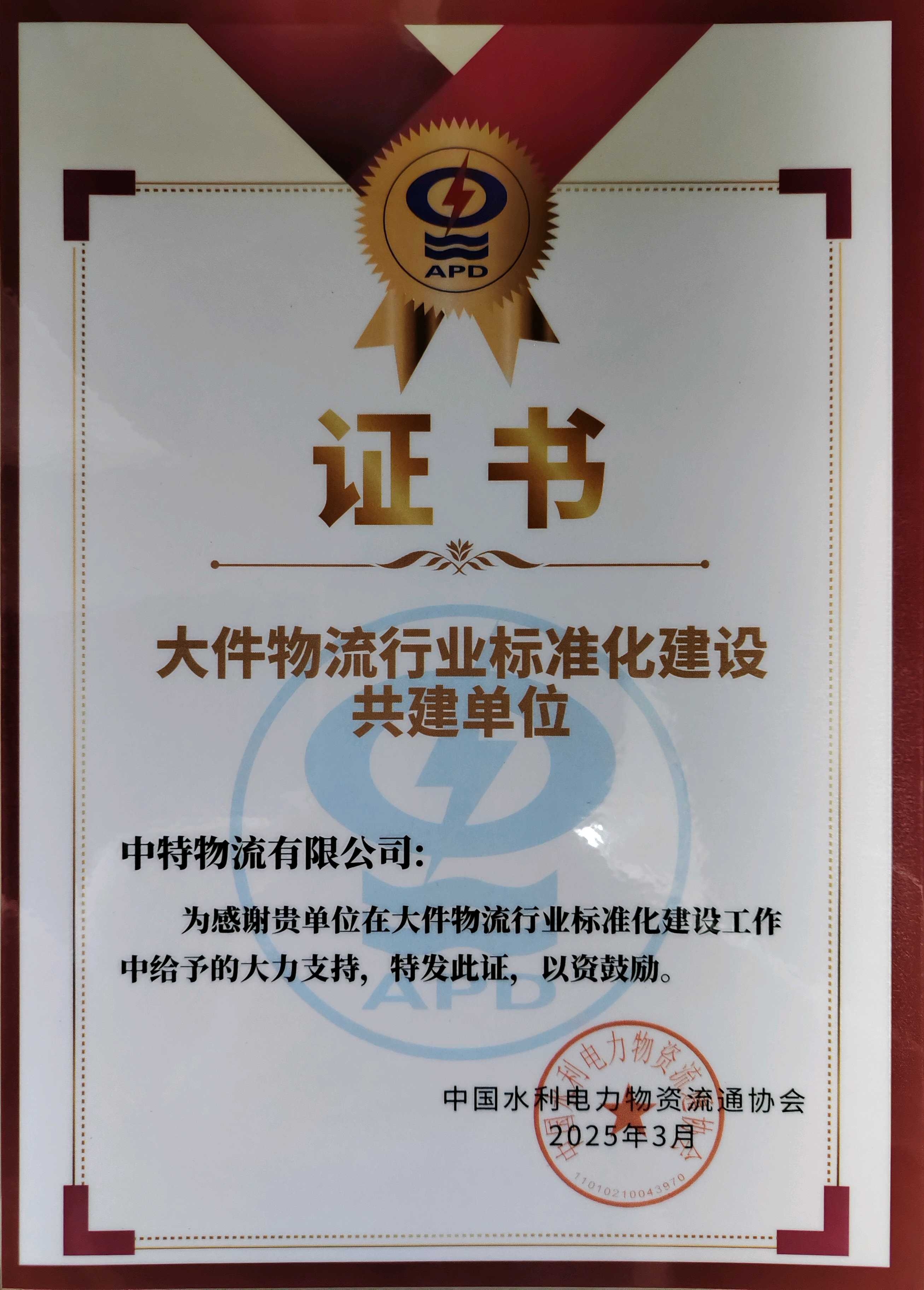 华贸物流子公司中特物流 中国唯一的铁路+公路大件运输资质企业,同时也是唯一的核工业铁路运输资质,公司为中国水利电力物资流通协会副会长单位,中国交通运输协会大件物流与运输信息化专业委员会副会长单位