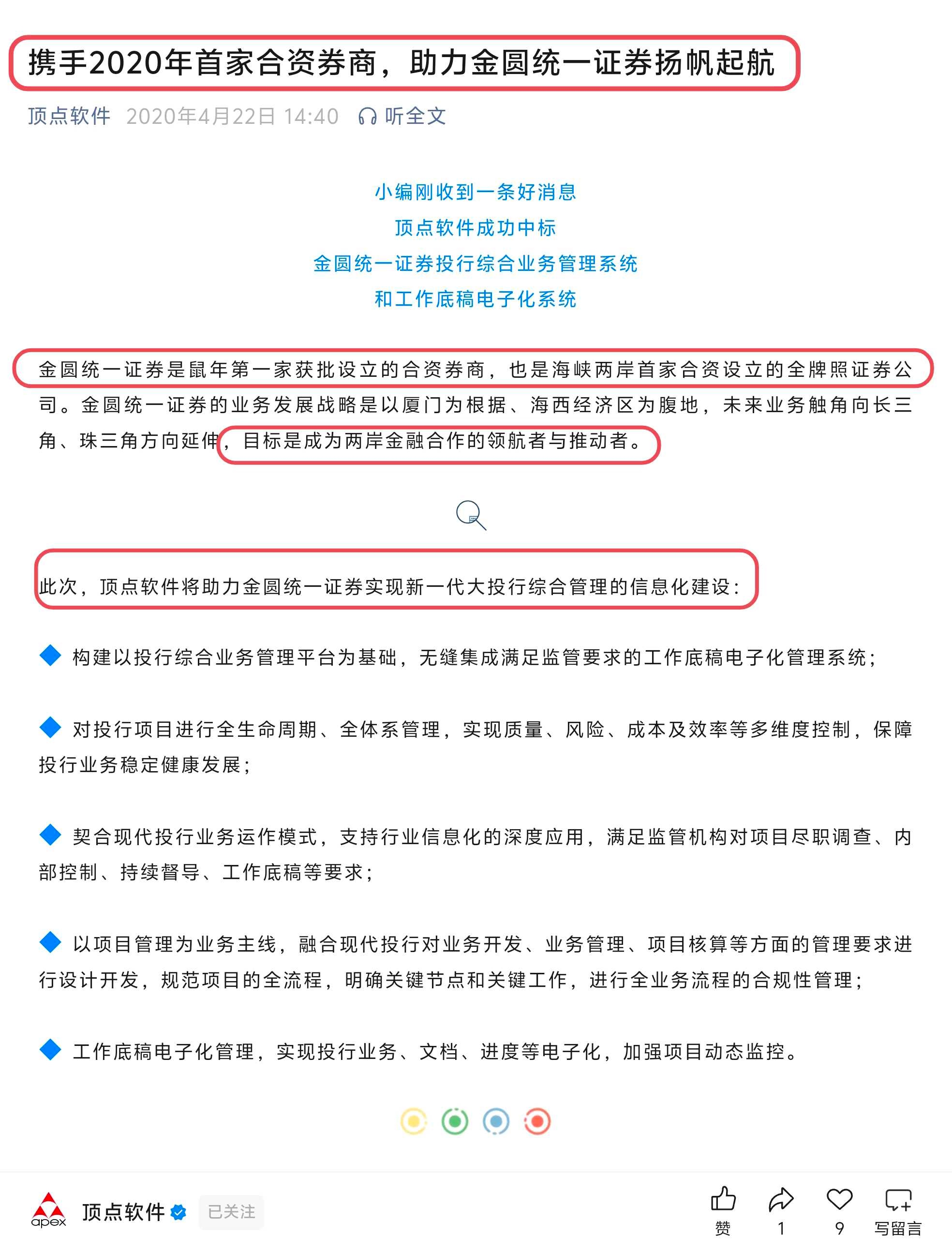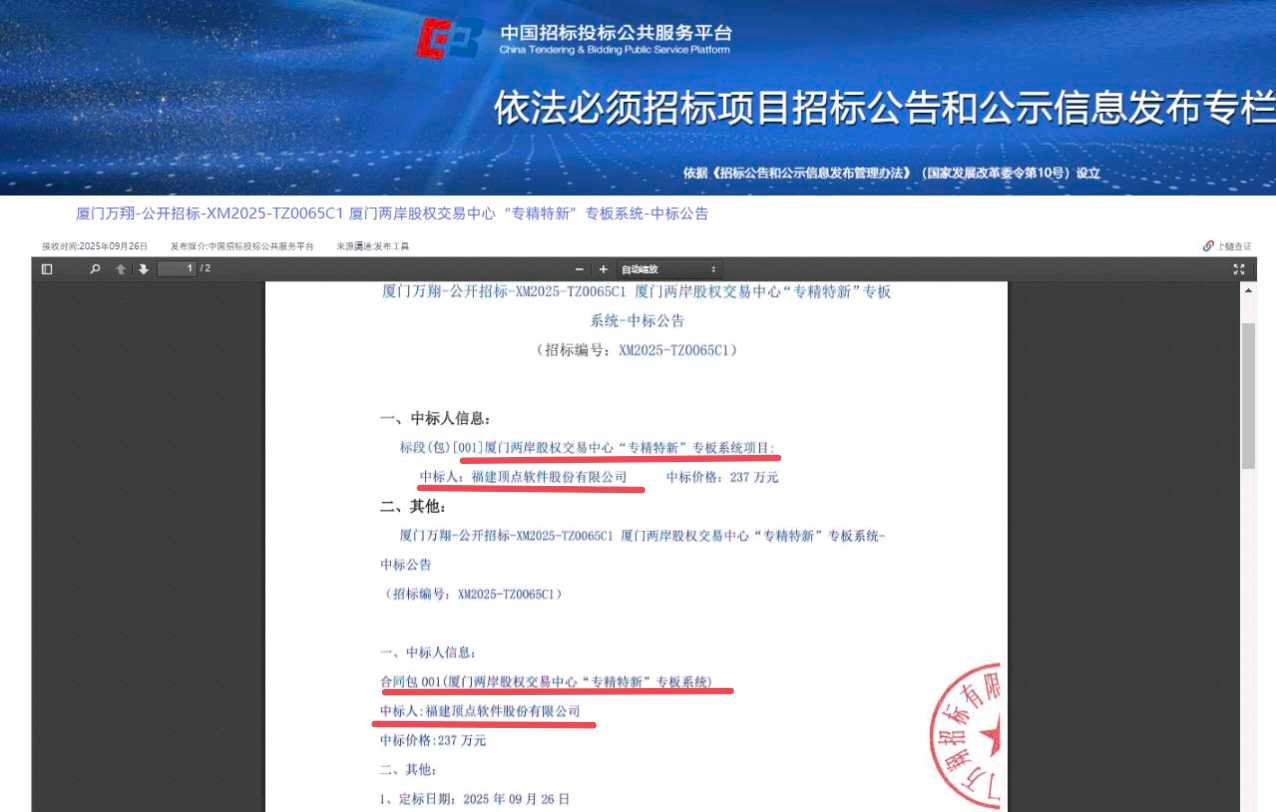 顶点软件 今年九月中标的厦门两岸股权交易中心项目,是A股唯一中标公司