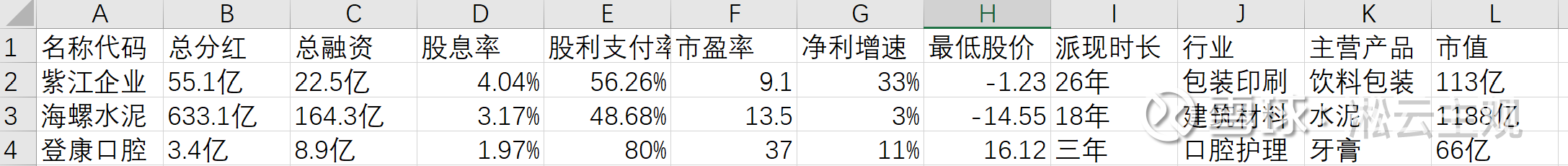 算是从自选股里整合出来的适合股息策略的几个企业
