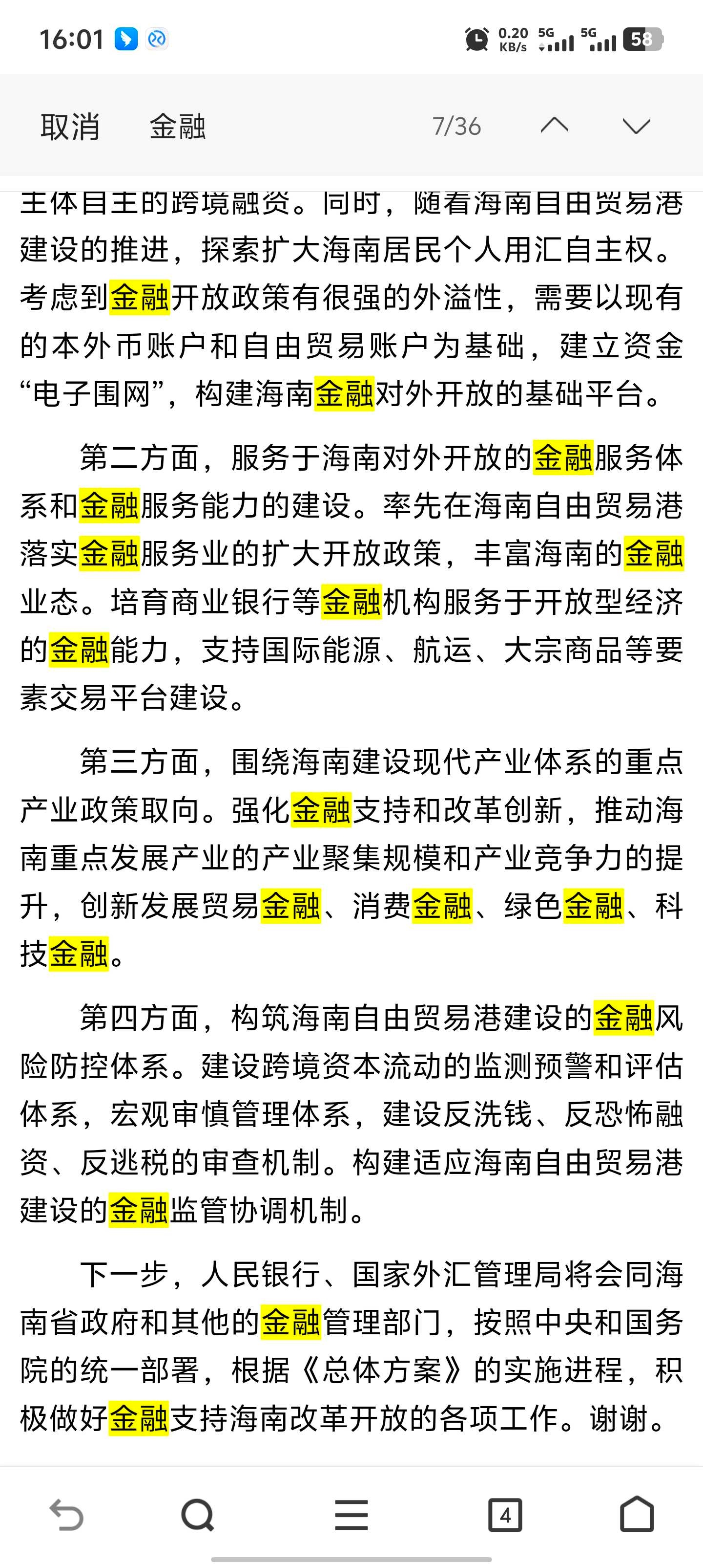 明确的金融开放任务:《中国(海南)自由贸易试验区总体方案》中设有“加快金融开放创新”的专项条款,要求出台一揽子政策措施,以服务实体经济、促进贸易投融资便利化。