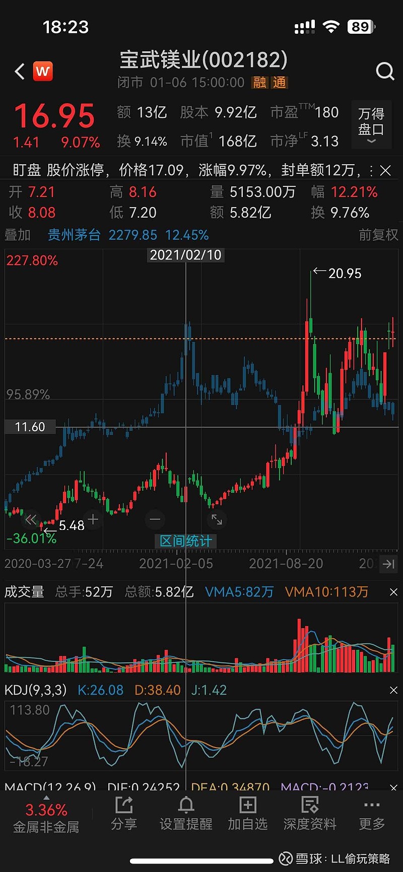 历史上大的行业切换,一般强势板块都会先疯狂上涨抽血市场,然后大盘整体一起跌一段,然后强势板块开始回调,弱势板块开始表现,以21年茅台漂亮50和有色金属中小盘为例。~这次强势板块是科技股,前段时间已经完成了疯狂上涨和抽血阶段,目前有色金属为例的老登风格开始占优,但是我不觉得这种切换能够很顺滑的进行,换言之,我觉得都会有剧烈波动,老登股也会回踩给市场一个相对不那么难受(追涨)的位置上车,才会开始爆发。~个人应对,还是盯住高换手和高波动(涨停)的票,看看能不能做t,大仓位还是不动