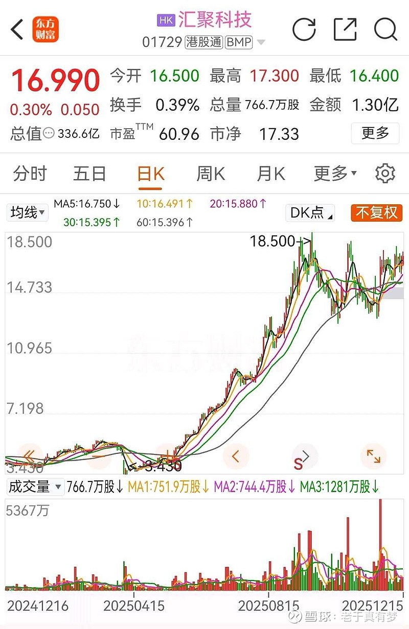 来,随便找个股,给大家做个题,港股汇聚科技,今年涨了6倍,问为什么?再问现在估值是合理区间?还是贵了?还是便宜?![]()