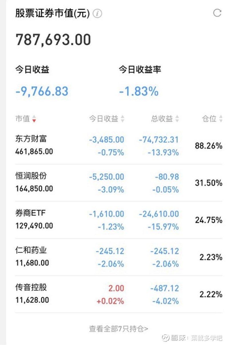 操作及分析:今日有色白银黄金股大跌,这个意料之中,毕竟前期涨的太猛了,可是我的东方财富和恒润股份前期也没怎么涨啊,今天也被无差别攻击,自己重仓的两只股都不太行,还是菜啊!