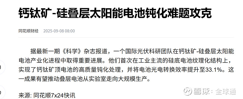 市场炒电池炒到了下一代技术固态电池,光伏也会炒到下一代技术钙钛矿!