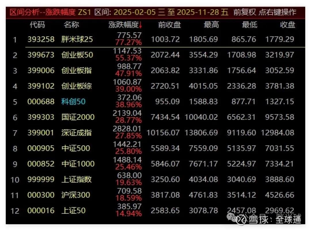 一、胖米球金股指数大涨77.9%,领跑各大指数