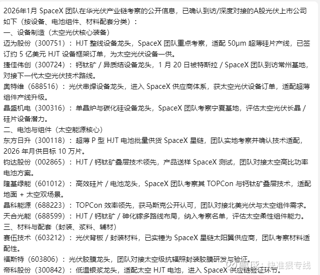 马斯克团队的中国行只是一个开始。随着太空光伏赛道正式启动,相关需求将迎来快速释放,那些在技术研发上走在前列的中国光伏企业,将在新赛道上赢得先机。