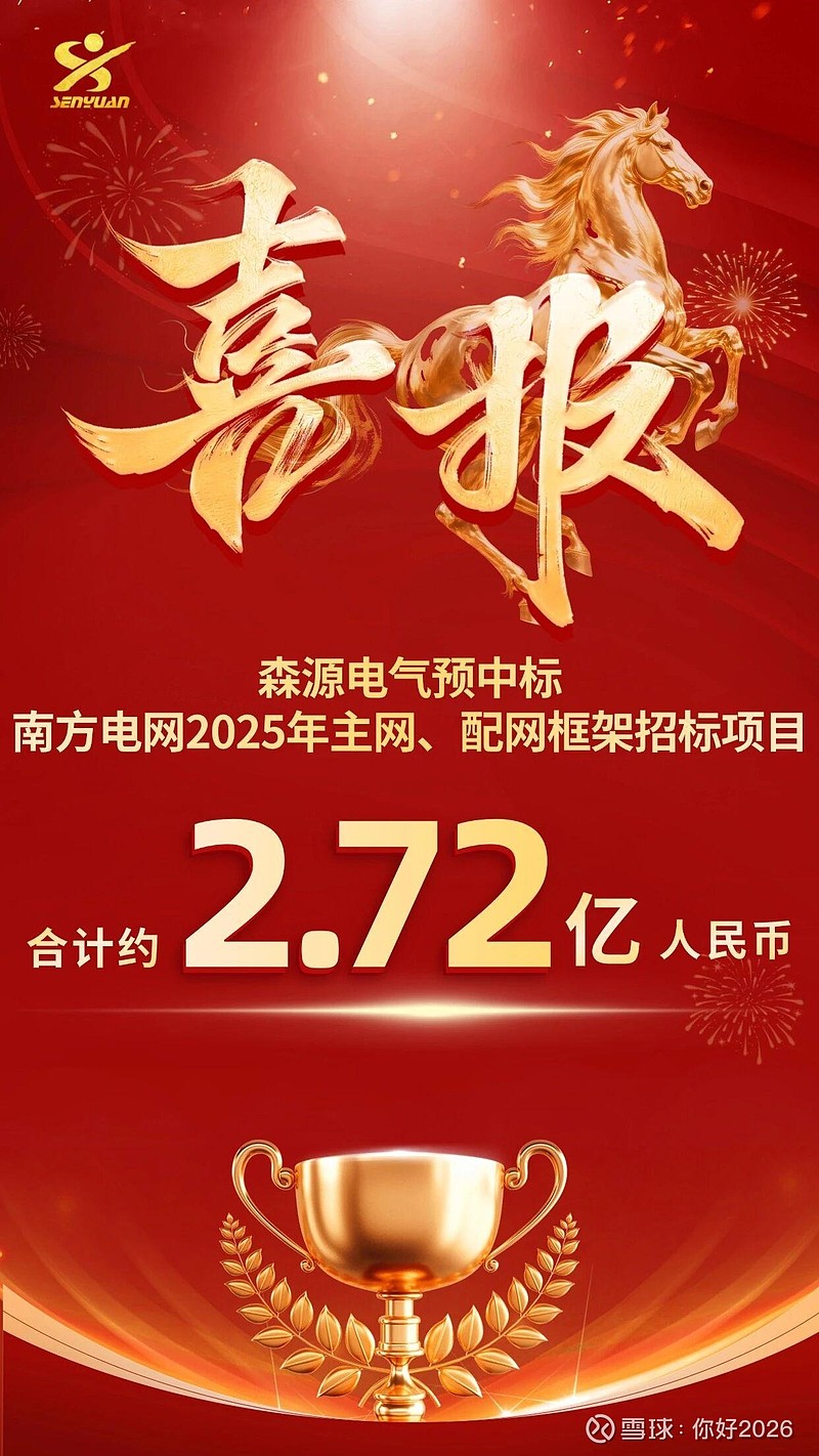 森源电气(SZ:002358):喜报丨森源电气预中标2.72亿南方电网主网、配网框架招标项目!