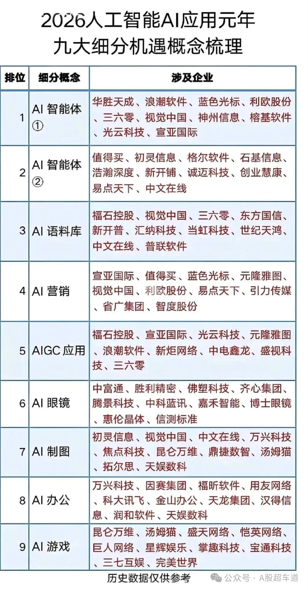 这三股力量的叠加,让2026年成为AI应用爆发的“奇点年”。而A股市场向来对“新故事”充满热情,当硬件的叙事失效,应用的逻辑将接过接力棒。
