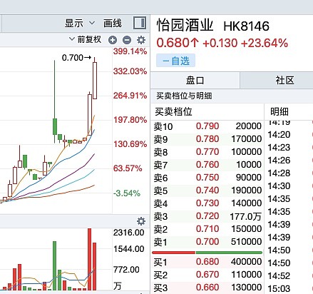 $怡园酒业(08146)$ 连续几天关注怡园酒业的股价,感觉大头还在后面,目前的收购只是开始,感觉杨陵江在下一盘大棋,现在才落下第一颗子。