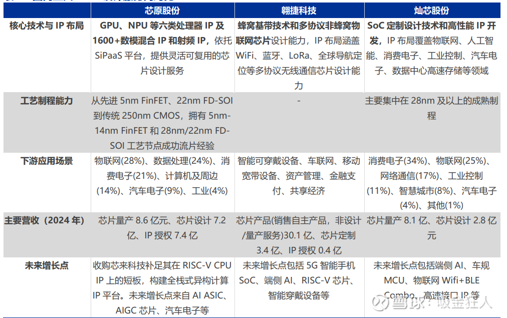 第一大股东为中芯国际,持股 14.23%。公司为客户提供芯片定制设计和 量产服务,产品广泛运用于物联网、工业控制、消费电子、网络通信、汽车电子、智慧城 市等行业。与中芯国际建立战略合作,依托其先进工艺节点,覆盖多种主流应用场景。公 司围绕 28nm 工艺平台,完成 AI ISP、大小核 CPU、NOC 总线等集成,并持续优化 PCIe、 DDR、SerDes 等高速接口 IP,适配 AI 推理芯片和车载视频传输等高性能场景。