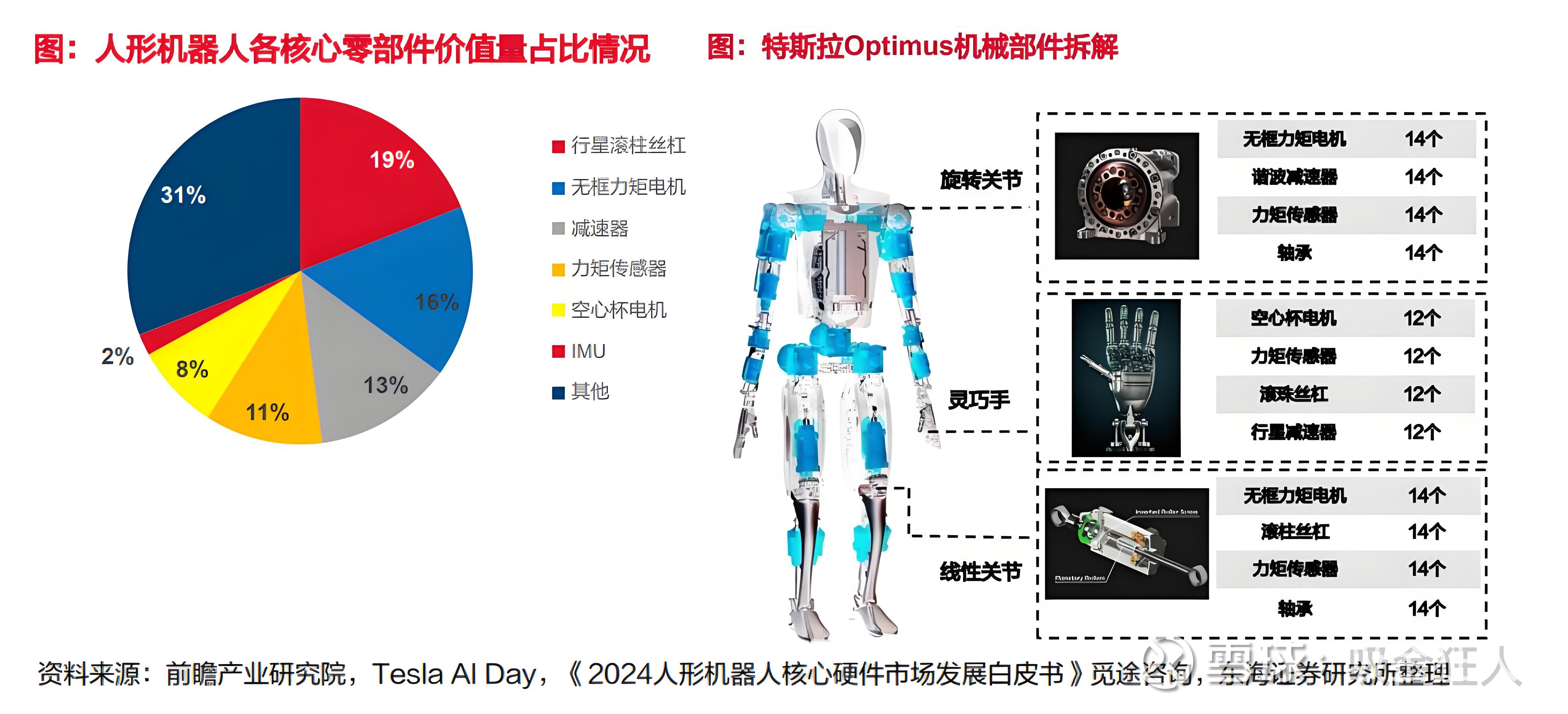人形机器人作为高度复杂的智能装备,上游核心机械零部件对其性能与功能的实现起着至关重要的作用。 例如关节模组、减速器、灵巧手、传感器等零部件,它们直接决定了人形机器人的运动精度、负载能力、 灵活性以及整体的可靠性。任何一个关键部件的性能不足都可能影响到人形机器人的整体表现。在全球 人形机器人产业快速发展的当下,相关核心机械零部件的市场需求预计将迎来显著增。