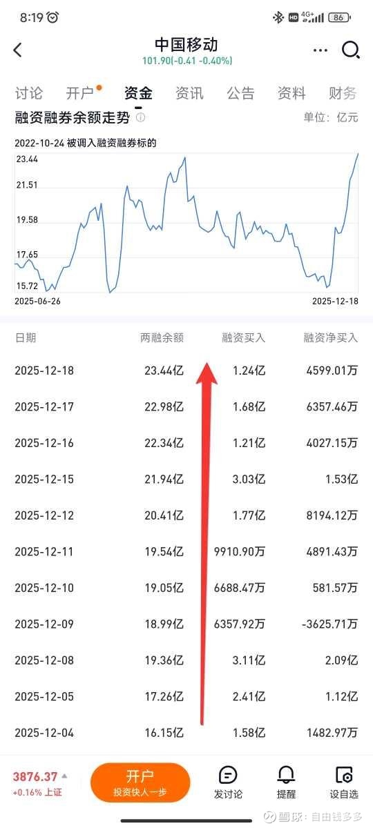 2025年12月18日数据显示,中国移动(600941.SH)两融余额攀升至23.44亿元,创下自2025年2月25日以来的近10个月新高,与同日录得的23.51亿元历史峰值仅一步之遥。