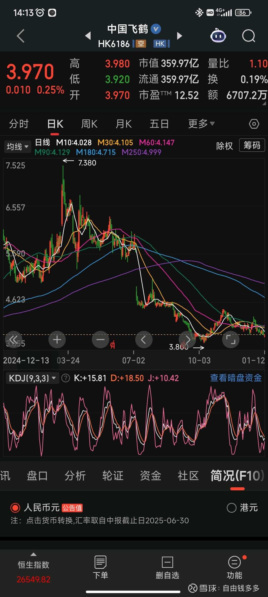 1. 中国飞鹤(06186.HK)2025 年股价表现