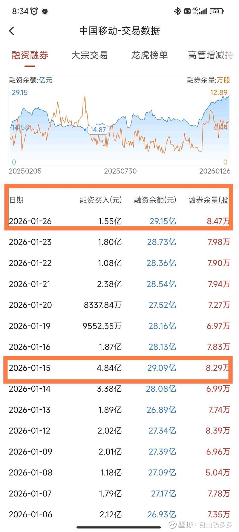 $中国移动(SH600941)$ 1月26日,中国移动融资余额达29.15亿,再创历史新高。前两天移动融资余额没有增长,还略有奇怪。招行的融资余额一直是增长的,大概率还是招行有冰哥这样的带头大哥持续加仓带来的安全慰藉,移动缺少这样的价投领袖!有没有大V扛旗,给兄弟们打打气!$沪深300(SH000300)$