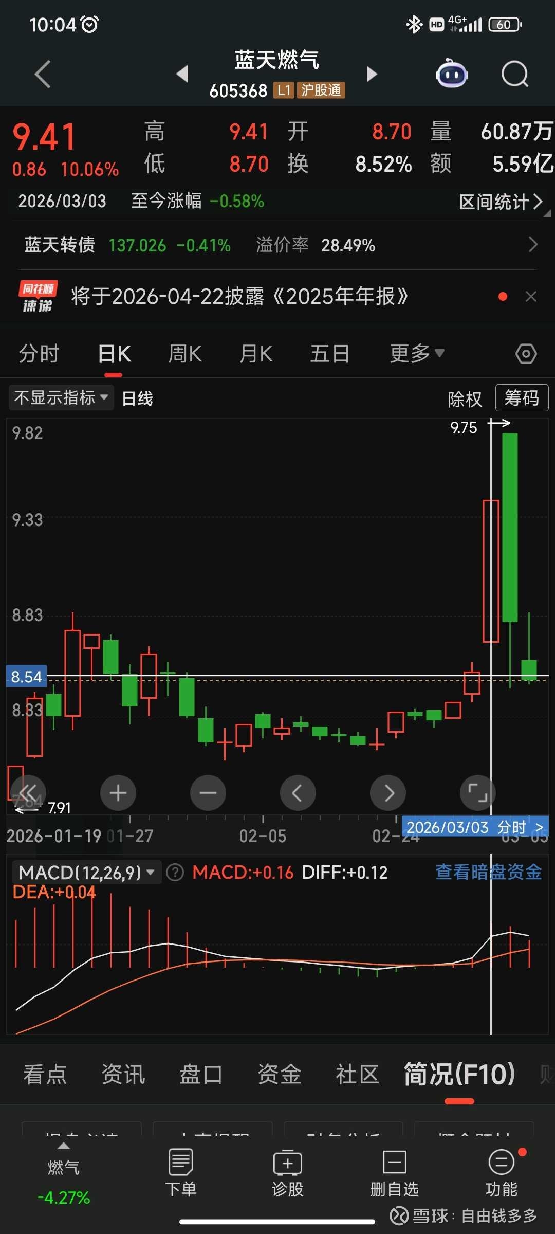 回复@自由钱多多: $蓝天燃气(SH605368)$ 看看给不给机会//@自由钱多多:回复@自由钱多多:前两天卖出时机真不错,等价格合适在买入,应该是资金反应过来了,作为燃气公司,天然气价格上涨,而终端售价调整缓慢,利润被侵蚀。$蓝天燃气(SH605368)$同样的逻辑也可用于石化化工,以石化为主、采掘为辅的 中国石化 上涨逻辑不同于中石油、中海油,等价格合适,把石化接回来。$中国石油化工股份(00386)$ 查看图片
