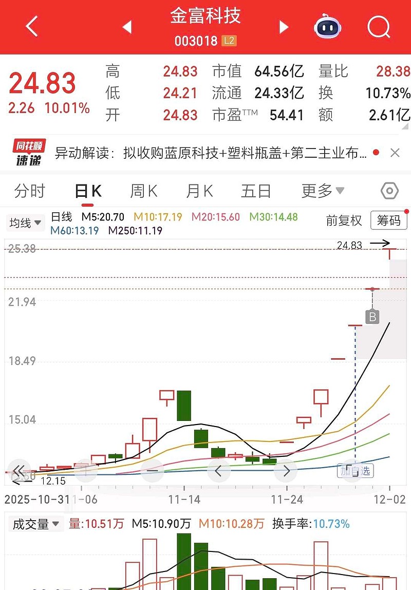 $金富科技(SZ003018)$