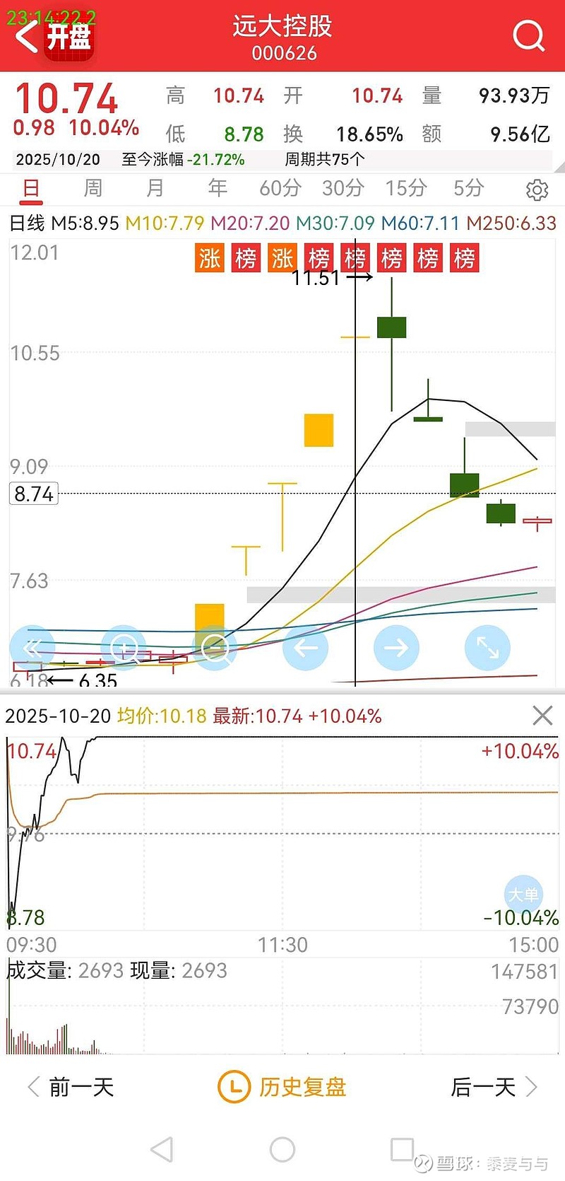 $万丰股份(SH603172)$ $远大控股(SZ000626)$天天玩短线天天玩情绪天天玩连板竟然还敢力推万丰股份还他么不如我一个半瓶子晃荡的来来来我给你找个先例10.20号的远大KG不说是一模一样吧简直就是双胞胎要不要收回你的复盘自己看着办