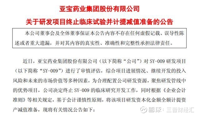 9月22日,山西医药上市公司亚宝药业(600351.SH)发布公告,宣布终止SY-009胶囊的临床研究开发工作,并对该项目资本化金额5579.33万元全额计提资产减值准备。