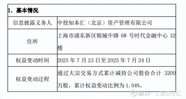 公告显示,7月23日至7月24日,中投知本汇还通过大宗交易方式减持3200万股,减持比例1.04%。叠加本次减持,中投知本汇近两月内累计套现超过2亿元。
