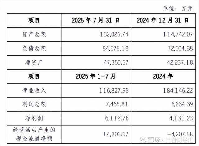 截至7月31日,公司总资产13.2亿元,总负债8.47亿元,净资产4.74亿元。