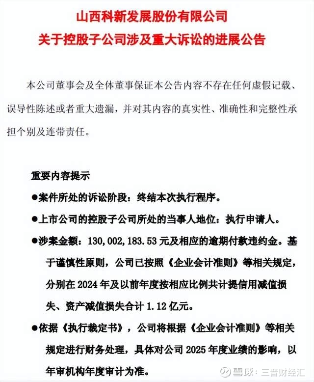 针对此次子公司工程款纠纷案,科新发展表示基于谨慎性原则,已于2024年及以前年度累计计提信用及资产减值损失1.12亿元。具体到对2025年度业绩的影响,公司将依照相关规定处理。