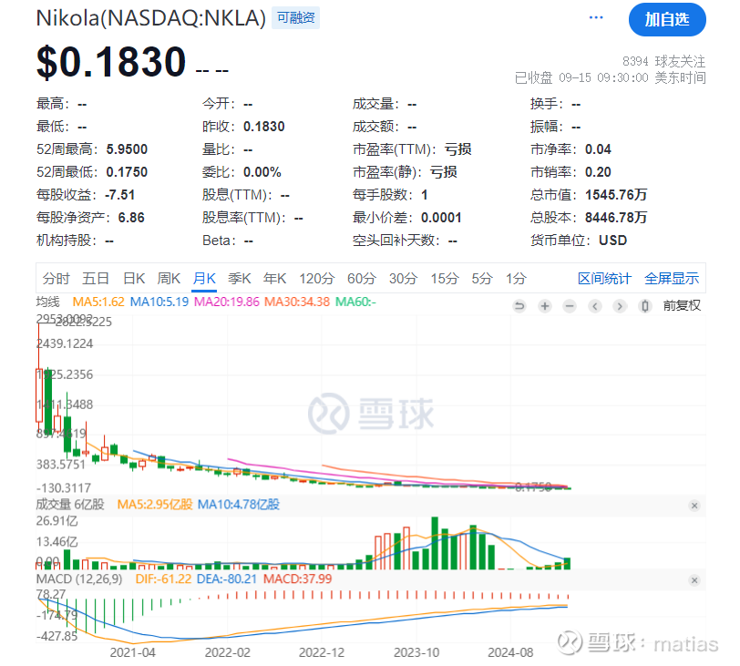 现在从底部的2.24美元,涨了接近1x,但是,已然跌去了接近98%。