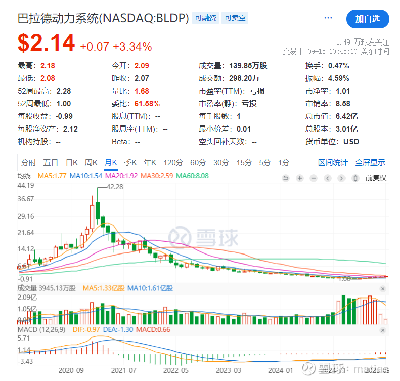 2021年1月最高到过75美元,最低跌到令人发指的65美分,现在底部“暴涨”,已经来到1.5美元,市值高达18亿美元。