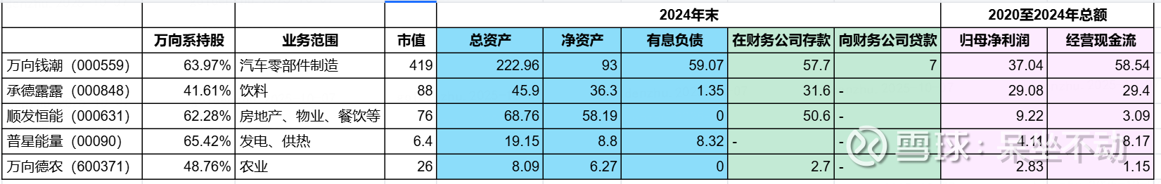 ①万向财务:由万向集团、万向钱潮、万向三农、德农种业分别持股66%、17%、10%、6.5%。除了万向钱潮,其余全是非上市公司。
