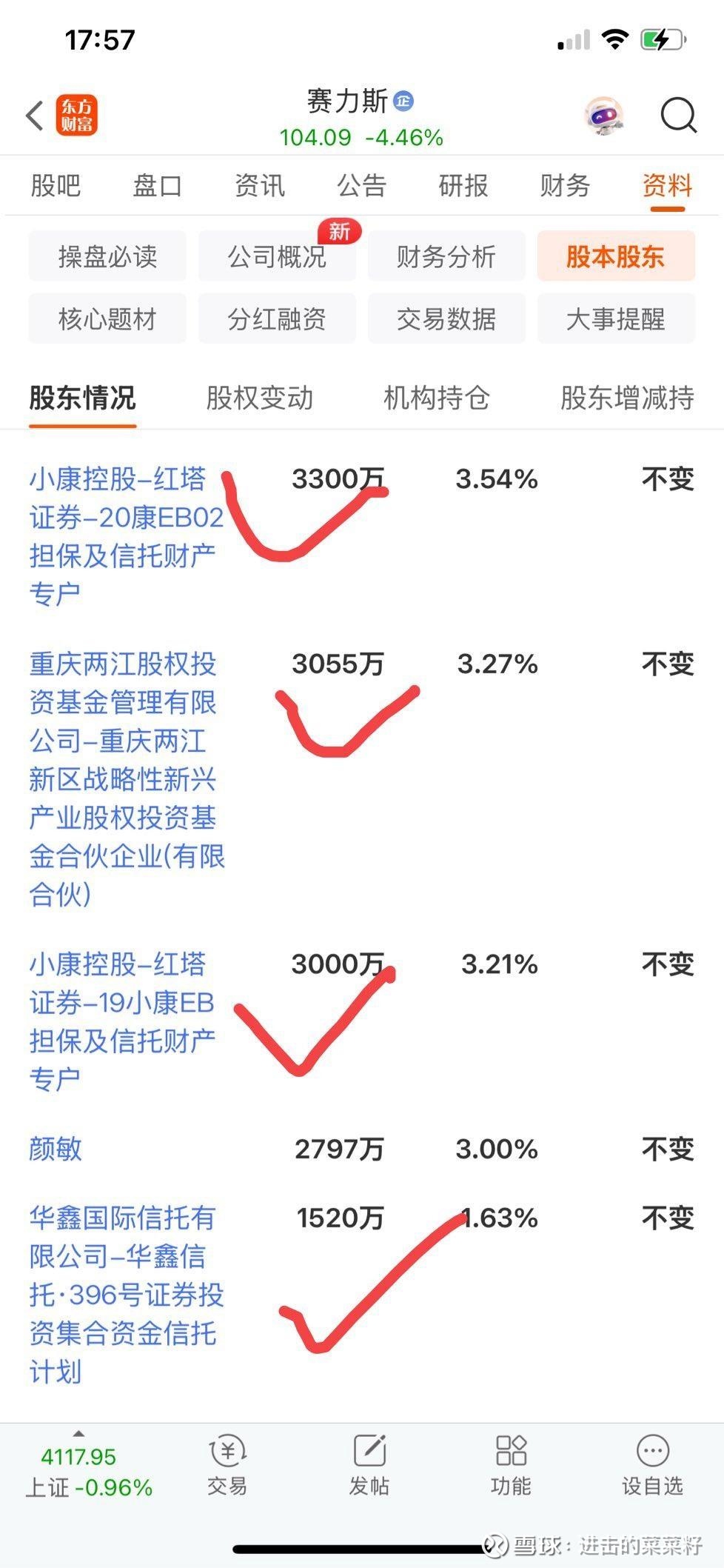 $赛力斯(SH601127)$ 三月有将近五千万股解禁 大家怎么看?2020年四季度开始到2021年二季度 他们也解禁过一波大的(下图2020年三季度的十大股东 包括可交换债转股的和解禁出来的 在之后的2020年10月到2021年6月底 九个月内跑光光)那个时候有华为汽车的宏大叙事支撑他们跑路 这次会有什么?拭目以待