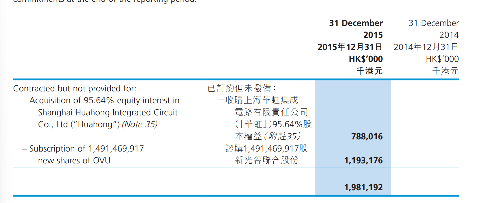 (上图显示同年收购上海华虹花了7.88亿,截止2015年,公司净现金约-26亿港元,这些基本都是用于收购了。)