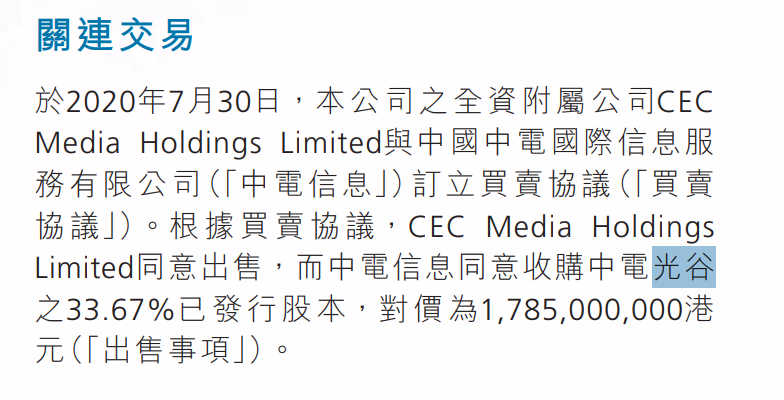 第一步:用中电科技100%股权以换股的方式出售给光谷,作价7亿港元,换取了光谷10亿股股份,折合约0.66港元/股。