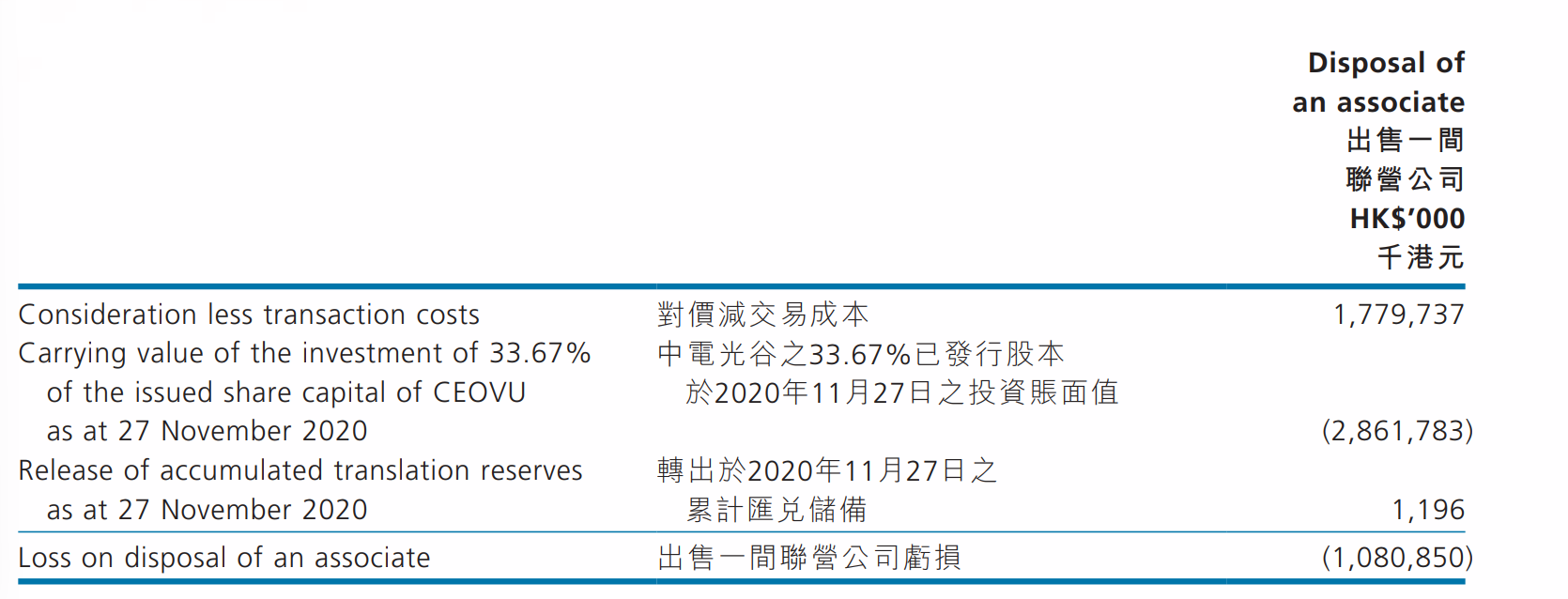 看$中电华大科技(00085)$ 最显眼的地方是2020年的巨额亏损,其中全部来自于出售中电光谷产生的亏损,简单扒一扒。