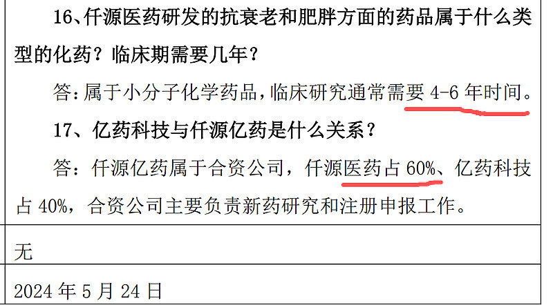 所谓#AI4S#,仟源医药与亿药科技2024 年 3 月 16 日成立合资公司仟源亿药,仟源持股60%,主研发抗衰老药物和减肥药。