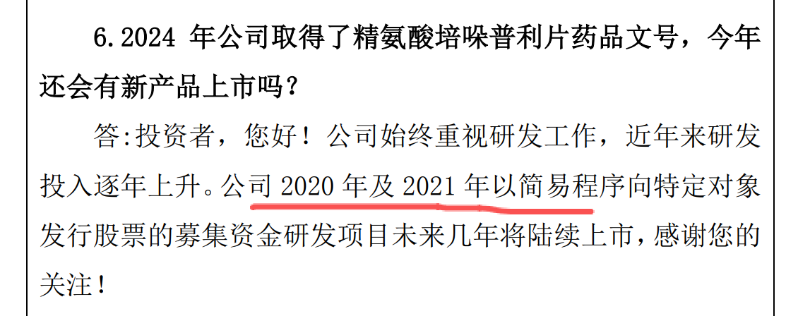据我了解,公司首仿药依伏卡塞片(治疗慢性肾病(CKD)维持性透析患者的继发性甲状旁腺功能亢进症(SHPT)),预计今年4月上市。