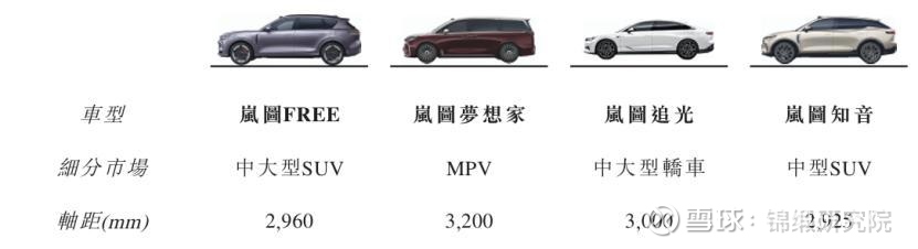 先来聊聊产品布局:目前岚图已经上市的主打的四款车型,分别为岚图FREE、岚图梦想家、岚图追光和岚图知音,分为对应中大型SUV、MPV、中大型轿车和中型MPV。主流的车型和价格带都有主打产品,布局合理清晰,覆盖轿车、SUV及MPV三大细分市场,已经拥有“三旗舰”和“SUV双子星”车型。