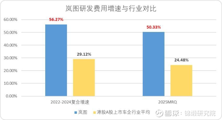 图:岚图研发增速与行业对比,来源:Choice金融客户端