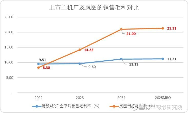 作为制造业集大成行业,销量增速不仅意味着营收口径优化,整车的成本也会明显改良,这一点也集中体现在了岚图汽车的盈利能力上。