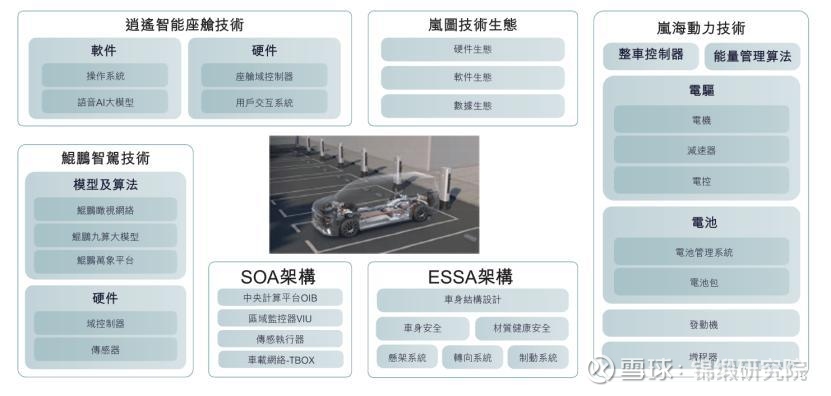 再来聊聊技术:对新能源车而言,最核心的技术能力分为两类,一类是以“车”为核心的平台架构和汽车机械素质,另一类是以“新”为核心的智能系统和座舱体验。