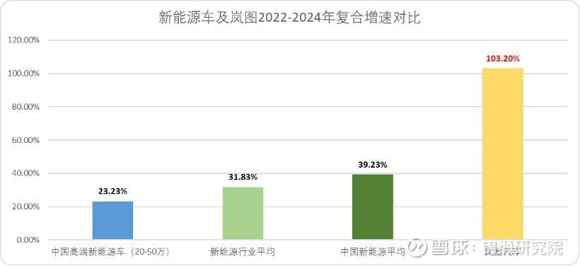 图:不同口径下新能源车复合增速与岚图对比,来源:灼识咨询,锦缎测算