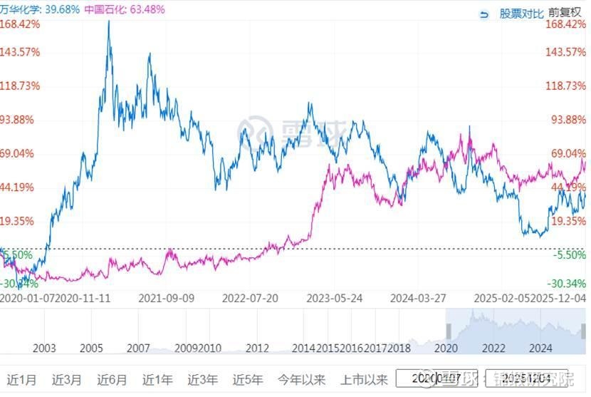 一度市值超过中国石化的万华化学,今天的市值,只有不到中石化的30%。