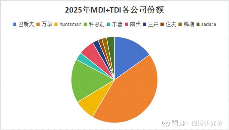 取而代之的,是万华化学这些中国欧佩克的产能高速扩张:截至2025年8月,万华福建TDI二期33万吨/年装置已建成投产,TDI总产能达到144万吨/年;华鲁恒升规划30万吨/年TDI产能。