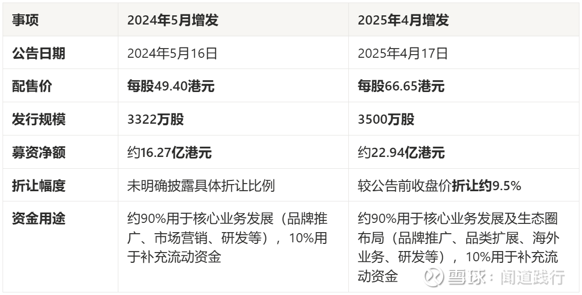 此后,巨子生物业绩高歌猛进,2024年5月和2025年4月,公司借势进行了两次高位增发。