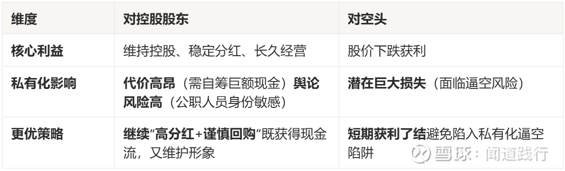 如果大股东提出一个看似不错的私有化价格,比如较当前价溢价30%-40%,而空头已经大量做空,他们就必须在市场上买入股票来平仓。