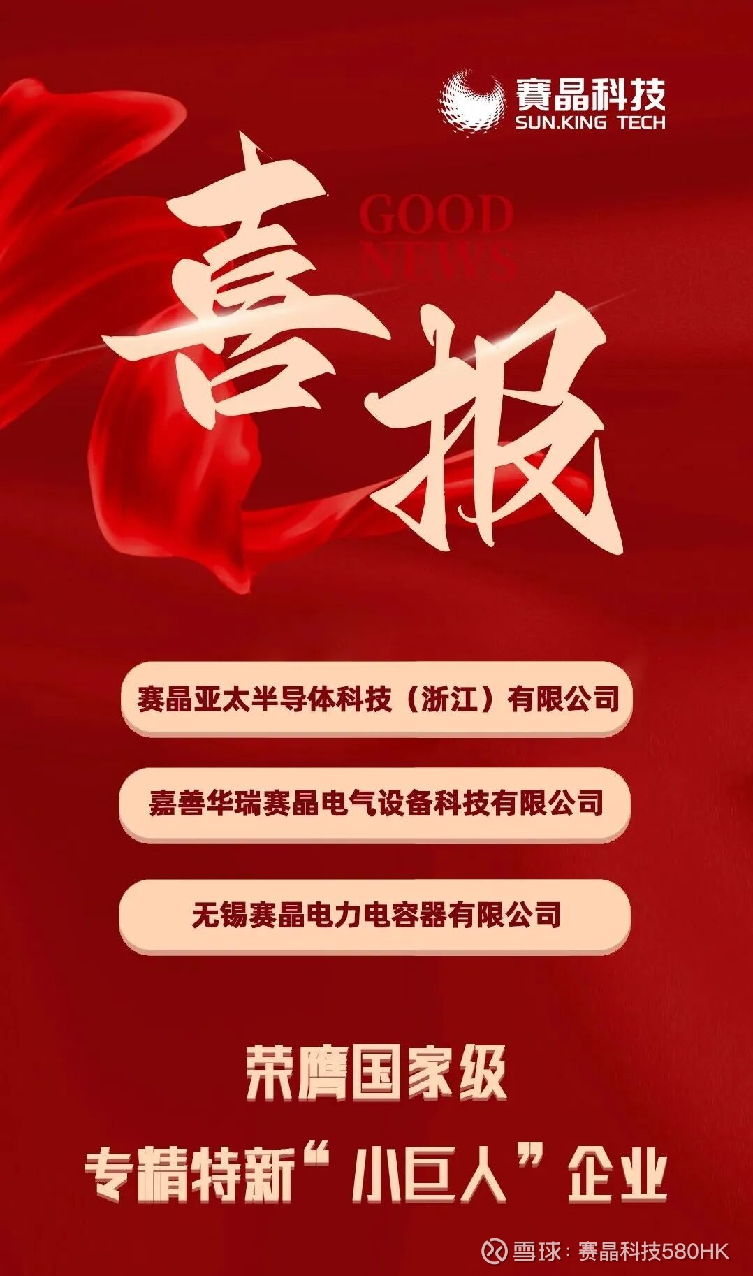 赛晶科技三家子公司新晋国家级专精特新“小巨人”