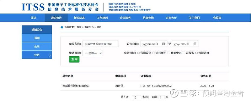 $南威软件(SH603636)$ 11月21日,南威软件(603636)集团正式通过ITSS运维服务能力成熟度一级(再评估)认证,这一认证标志着南威软件集团的运维服务能力达到国内最高标准,属于行业顶尖梯队。