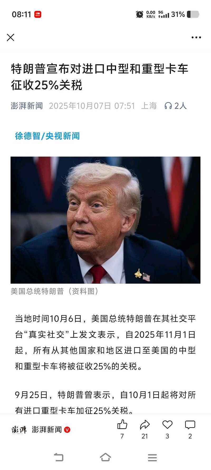 v解放的卡车有没有出口美国呀?特靠谱加征25%关税