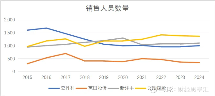 对比同类型化肥生产企业的销售人员数量,可以发现对于化肥企业,销售渠道的建设是十分重要的一环。新洋丰(000902.SZ)、云图控股(002539.SZ)和史丹利的销售人员都在千人以上,云图控股的人员数量更是高达1365人,比芭田股份(002179.SZ)多出将近千人。