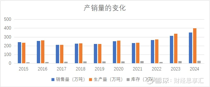 但这样的情况在2021年之后发生了改变,史丹利的产销量出现了爆发式的增长。2024年产销量分别达到了351.28万吨和400.75万吨,相比2021年涨幅达到了34.42%和70.74%。那么史丹利是怎样取得营收和利润的双增长呢?