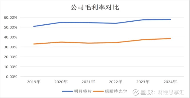 更重要的是,镜片也早已不只是“矫正视力”的简单商品,随着轻薄、耐磨、防蓝光等功能属性不断叠加,产品的利润空间进一步被打开。财务数据同样印证了这一趋势:近几年公司毛利率持续提升,整体水平高于同行康耐特光学。
